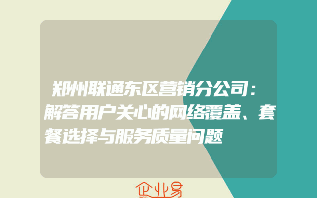 - 郑州联通东区营销分公司:解答用户关心的网络覆盖、套餐选择与服务质量问题