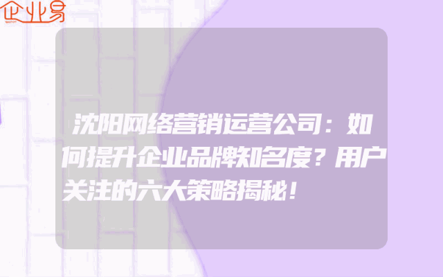 - 沈阳网络营销运营公司:如何提升企业品牌知名度?用户关注的六大策略揭秘!