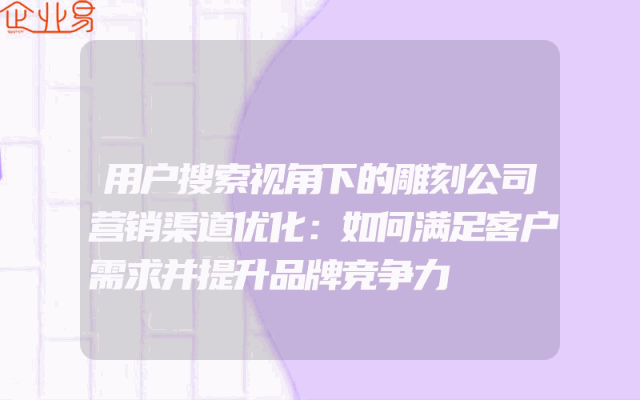 - 用户搜索视角下的雕刻公司营销渠道优化:如何满足客户需求并提升品牌竞争力