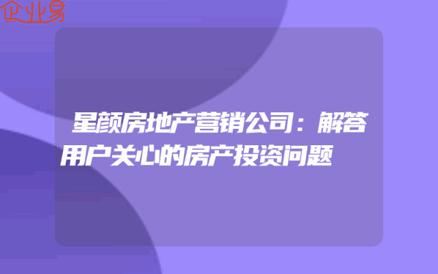 - 星颜房地产营销公司:解答用户关心的房产投资问题