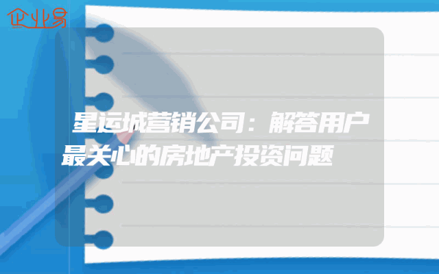 - 星运城营销公司:解答用户最关心的房地产投资问题