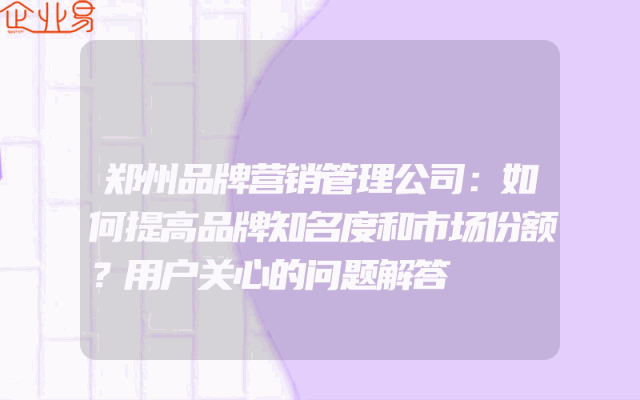 - 郑州品牌营销管理公司:如何提高品牌知名度和市场份额?用户关心的问题解答