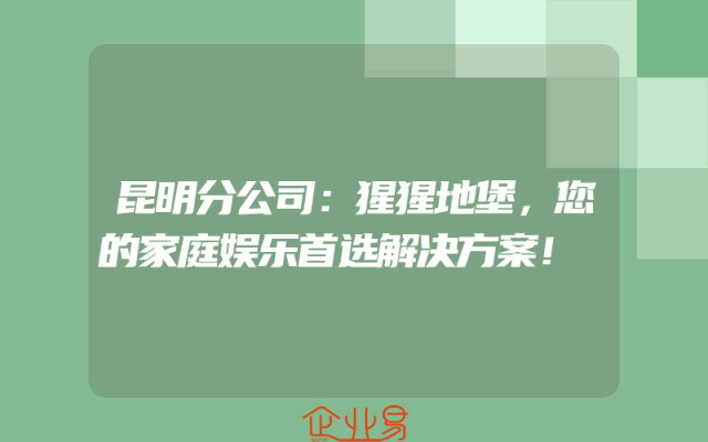 - 昆明分公司:猩猩地堡,您的家庭娱乐首选解决方案!