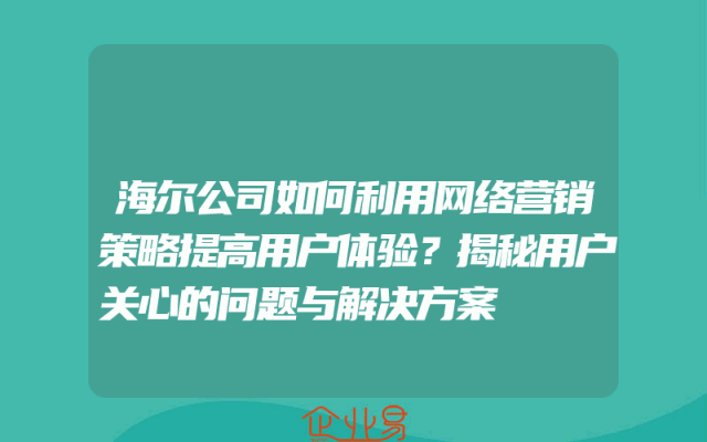 - 海尔公司如何利用网络营销策略提高用户体验?揭秘用户关心的问题与解决方案