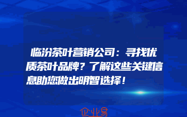 - 临汾茶叶营销公司:寻找优质茶叶品牌?了解这些关键信息助您做出明智选择!