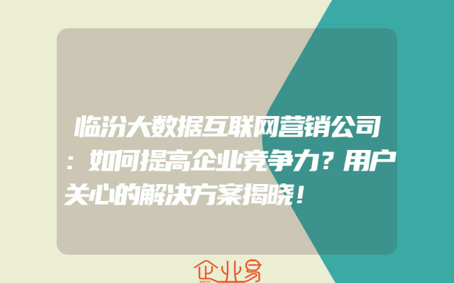 - 临汾大数据互联网营销公司:如何提高企业竞争力?用户关心的解决方案揭晓!