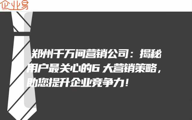 - 郑州千万间营销公司:揭秘用户最关心的6大营销策略,助您提升企业竞争力!