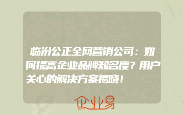 - 临汾公正全网营销公司:如何提高企业品牌知名度?用户关心的解决方案揭晓!