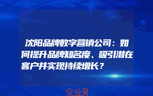 - 沈阳品牌数字营销公司:如何提升品牌知名度、吸引潜在客户并实现持续增长?