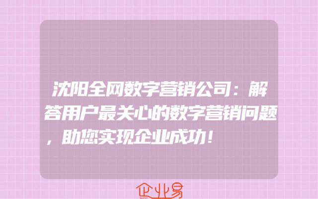 - 沈阳全网数字营销公司:解答用户最关心的数字营销问题,助您实现企业成功!