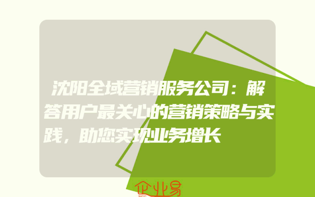 - 沈阳全域营销服务公司:解答用户最关心的营销策略与实践,助您实现业务增长