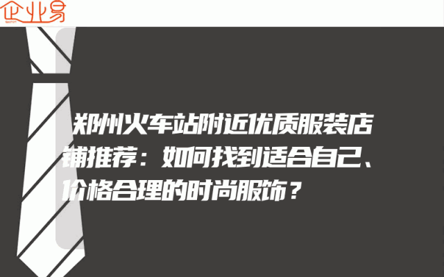 - 郑州火车站附近优质服装店铺推荐:如何找到适合自己、价格合理的时尚服饰?在郑州火车站附近,有很多时尚的服装店铺供你选择。但是,如何找到适合自己的、价格合理的时尚服饰呢?本文将为你提供一些建议和推荐的店铺,帮助你在众多的选择中找到最适合自己的服