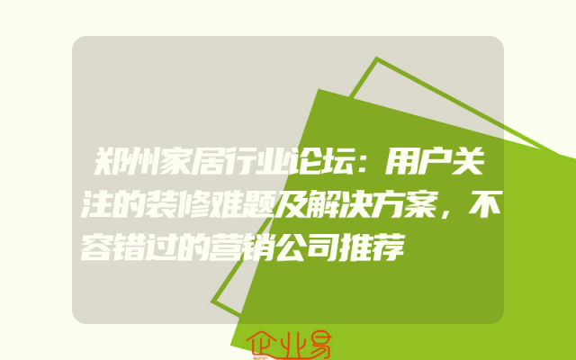 - 郑州家居行业论坛:用户关注的装修难题及解决方案,不容错过的营销公司推荐