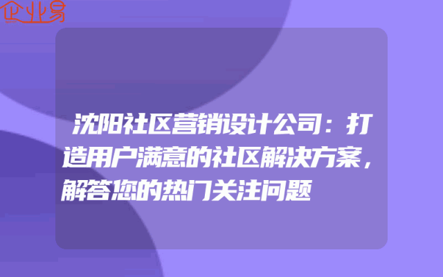 - 沈阳社区营销设计公司:打造用户满意的社区解决方案,解答您的热门关注问题