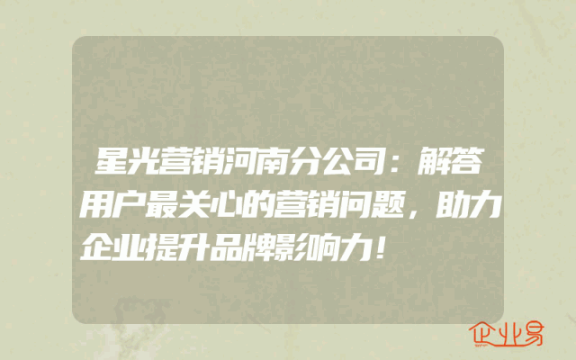 - 星光营销河南分公司:解答用户最关心的营销问题,助力企业提升品牌影响力!