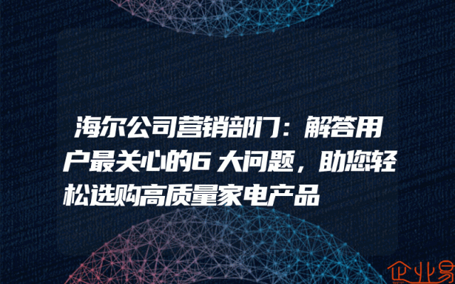 - 海尔公司营销部门:解答用户最关心的6大问题,助您轻松选购高质量家电产品