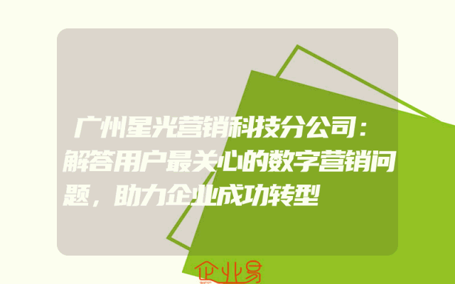 - 广州星光营销科技分公司:解答用户最关心的数字营销问题,助力企业成功转型