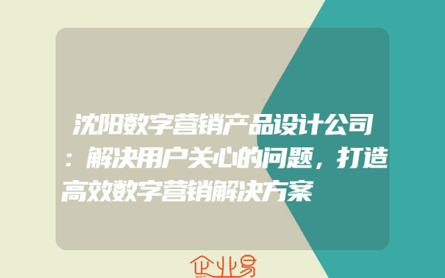- 沈阳数字营销产品设计公司:解决用户关心的问题,打造高效数字营销解决方案