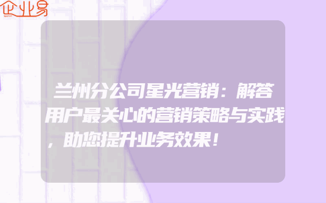 - 兰州分公司星光营销:解答用户最关心的营销策略与实践,助您提升业务效果!