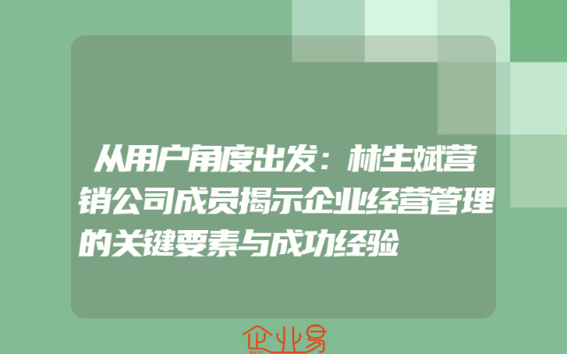 - 从用户角度出发:林生斌营销公司成员揭示企业经营管理的关键要素与成功经验