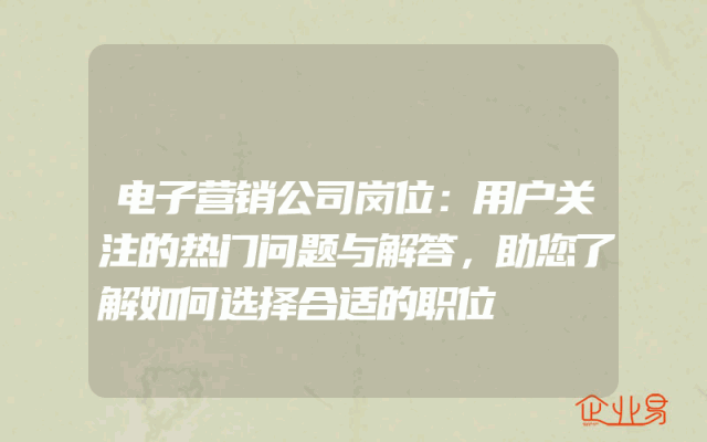 - 电子营销公司岗位:用户关注的热门问题与解答,助您了解如何选择合适的职位