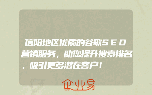 - 信阳地区优质的谷歌SEO营销服务,助您提升搜索排名,吸引更多潜在客户!
