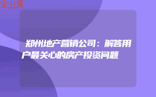 - 郑州地产营销公司:解答用户最关心的房产投资问题