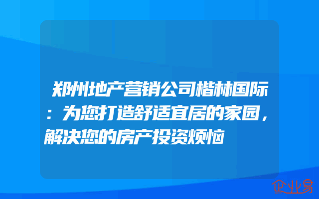- 郑州地产营销公司楷林国际:为您打造舒适宜居的家园,解决您的房产投资烦恼