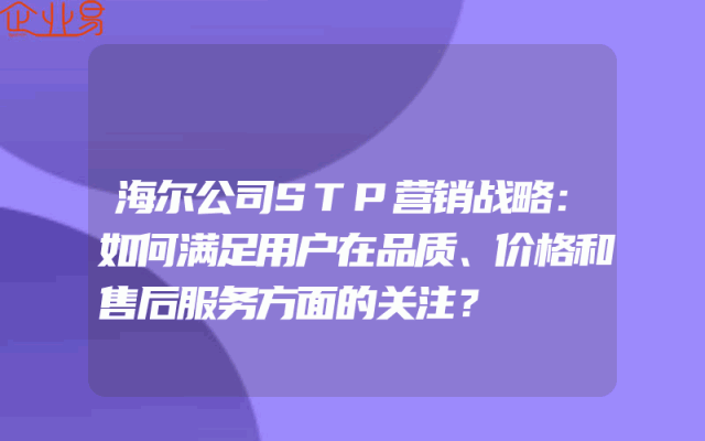- 海尔公司STP营销战略:如何满足用户在品质、价格和售后服务方面的关注?