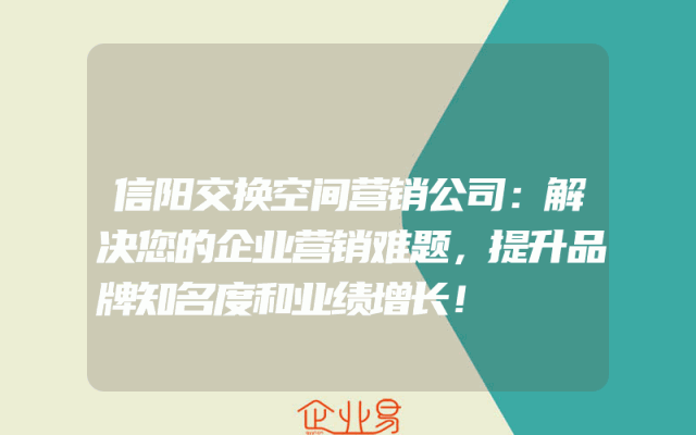 - 信阳交换空间营销公司:解决您的企业营销难题,提升品牌知名度和业绩增长!