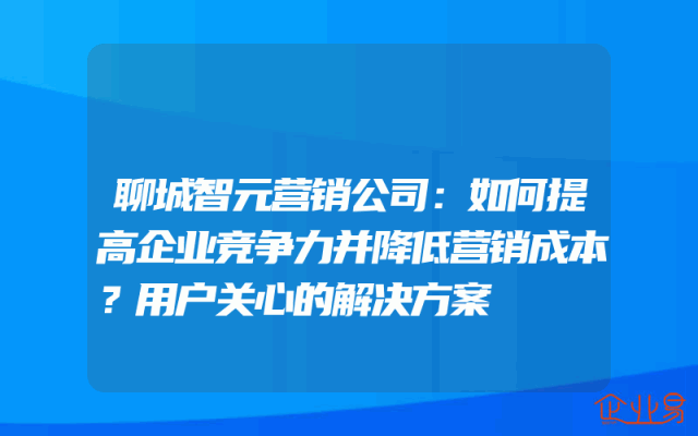 - 聊城智元营销公司:如何提高企业竞争力并降低营销成本?用户关心的解决方案