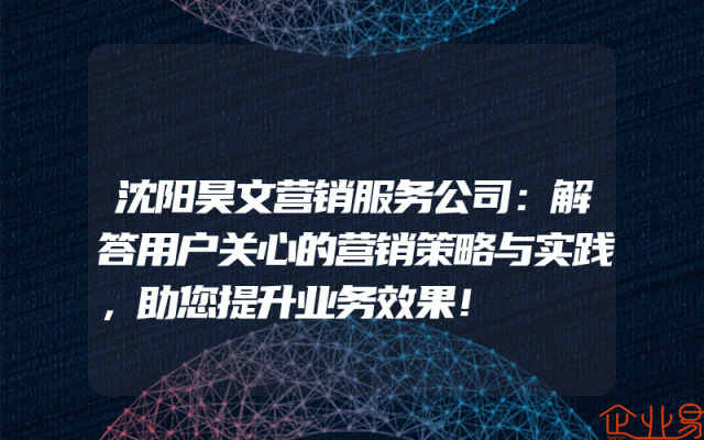 - 沈阳昊文营销服务公司:解答用户关心的营销策略与实践,助您提升业务效果!