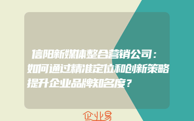 - 信阳新媒体整合营销公司:如何通过精准定位和创新策略提升企业品牌知名度?