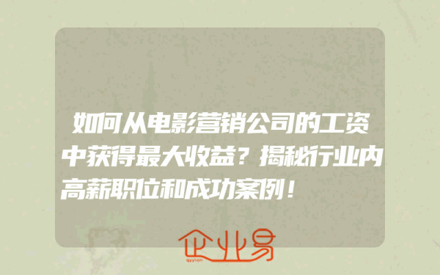 - 如何从电影营销公司的工资中获得最大收益?揭秘行业内高薪职位和成功案例!