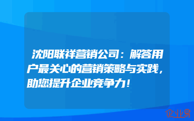 - 沈阳联祥营销公司:解答用户最关心的营销策略与实践,助您提升企业竞争力!