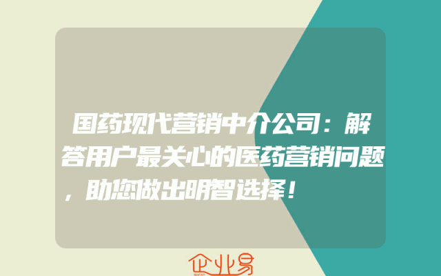 - 国药现代营销中介公司:解答用户最关心的医药营销问题,助您做出明智选择!