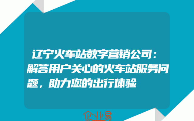 - 辽宁火车站数字营销公司:解答用户关心的火车站服务问题,助力您的出行体验