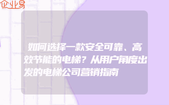 - 如何选择一款安全可靠、高效节能的电梯?从用户角度出发的电梯公司营销指南