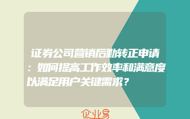 - 证券公司营销后勤转正申请:如何提高工作效率和满意度以满足用户关键需求?