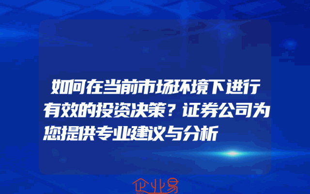 - 如何在当前市场环境下进行有效的投资决策?证券公司为您提供专业建议与分析