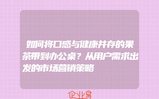 - 如何将口感与健康并存的果茶带到办公桌?从用户需求出发的市场营销策略