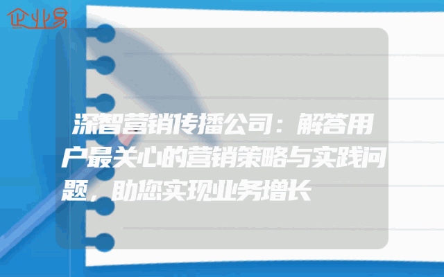 - 深智营销传播公司:解答用户最关心的营销策略与实践问题,助您实现业务增长