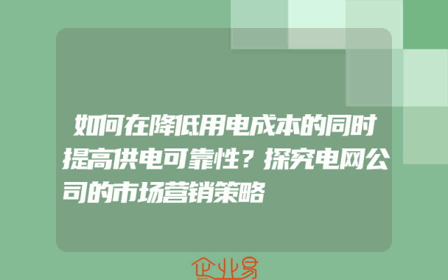 - 如何在降低用电成本的同时提高供电可靠性?探究电网公司的市场营销策略