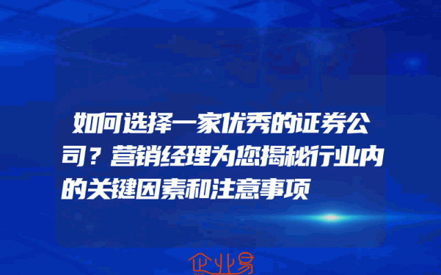 - 如何选择一家优秀的证券公司?营销经理为您揭秘行业内的关键因素和注意事项