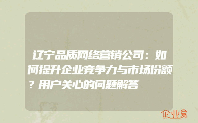 - 辽宁品质网络营销公司:如何提升企业竞争力与市场份额?用户关心的问题解答