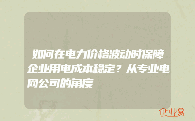 - 如何在电力价格波动时保障企业用电成本稳定?从专业电网公司的角度