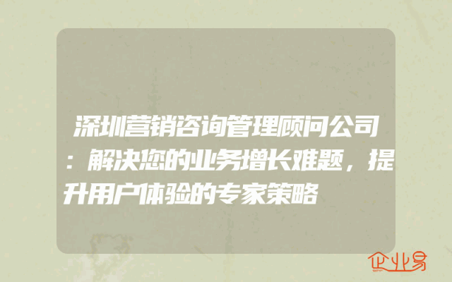 - 深圳营销咨询管理顾问公司:解决您的业务增长难题,提升用户体验的专家策略
