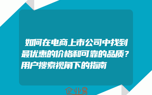 - 如何在电商上市公司中找到最优惠的价格和可靠的品质?用户搜索视角下的指南
