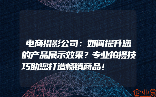 - 电商摄影公司:如何提升您的产品展示效果?专业拍摄技巧助您打造畅销商品!