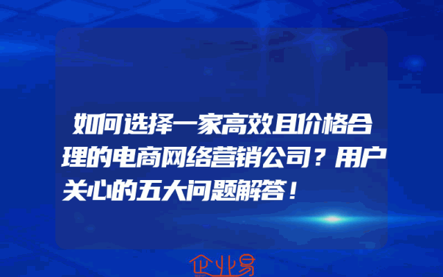 - 如何选择一家高效且价格合理的电商网络营销公司?用户关心的五大问题解答!